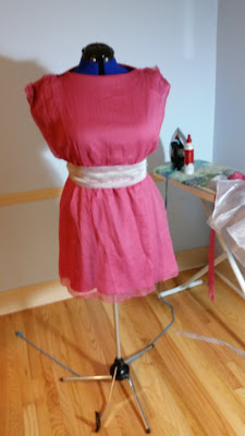 Then, I cut the bottom of the pink and pinned to the height I wanted the dress to be.
