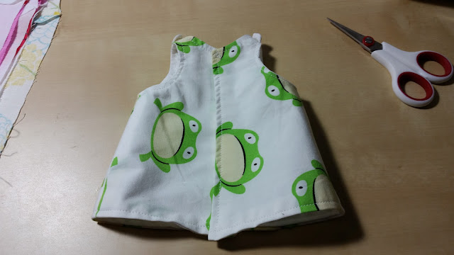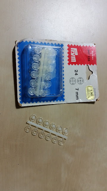 I used some old tiny plastic sew on snaps I had bought a very long time in bulk on eBay. For the large size I will use press-in snaps because it is easier but I only had a larger size, too large for the smaller gown sizes.
